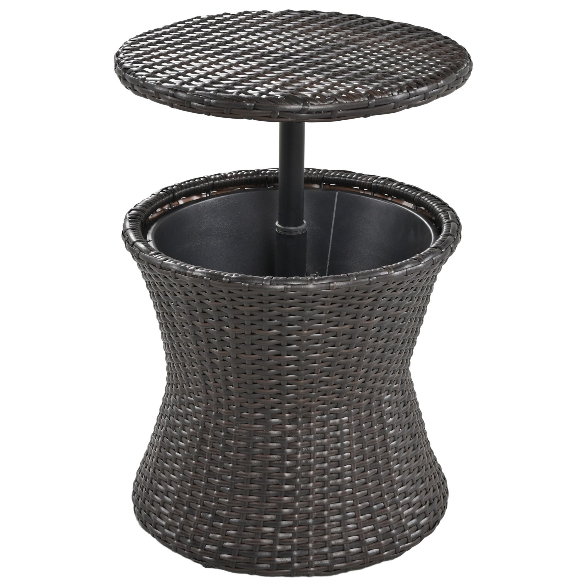[Pop-Up Cool Bar Table] This portable bar table allows your guests to grab chilled beverages while reclining comfortably in the rope sofa set. The Lid elevates upwards 8 inches above the rim for use as a patio bar table. The top reveals a hidden cooler with a 4-gallon capacity, which can keep up to twenty 12 oz. cans ice cold. When not in use, close the top and use it as a patio coffee table. When raised, it's perfect for a hot tub table with space for your drink, snacks, and phone.
